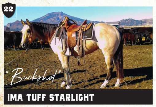Notes: "Buckshot" is a good horse, good feet and bone. Real good looking. His mother has been a good producer for us. Bucksot has done everything you can do on one that is 5. We have branded lots of calves on him, shipped yearlings, paired out loads, flagged colts and heeled on him a lot. He has been to the jackpots and wants to be good. We will have a set of x-rays on file at the sale. For more information call 209.499.7955.