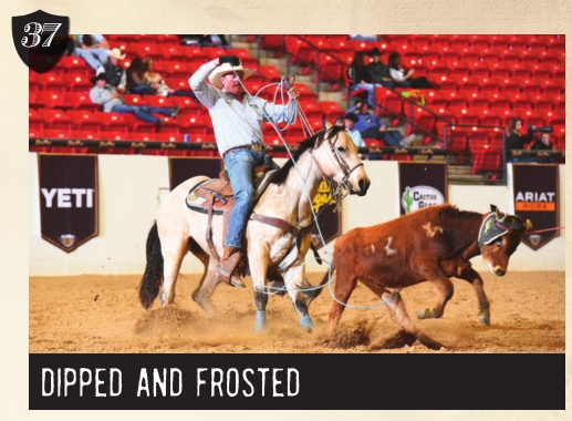LOT 37: Grandson of the famous Sunfrost on the top and goes back to PC Bronsin on the bottom. Buckshot was started as a 2-year-old and started on the barrels as a 3-year-old. As a 4-year-old I started him in the heeling. Last year as a 5-year-old I won $100K on him between Arizona jackpots and Vegas. He’s gentle for anybody. Travels really smooth and easy to catch on. He’s been ridden on the ranch gathering, sorting, calving, and drug calves to the fire. Here is a classy looking buckskin that any level of roper can ride. Gentle, sound and current on all shots and coggins.