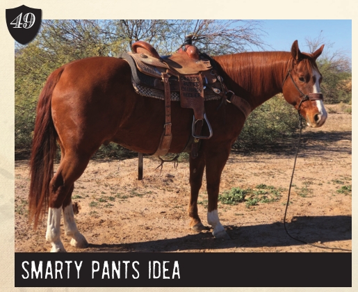 49 Phoenix April 14, 2011 • Sorrel Gelding (8) Todd & Tracie Wood, Sidney, MT, 817.713.1900 or 208.680.0946 SMART LITTLE LENA SIRE: SMART IDEA PEPPY PETITE JUANS LITTLE PEPPY DAM: JUANS LITTLE BRANDY FRECKLES BRANDY LENA LOT 49: Phoenix is an upper level heel horse. Very quick to cattle and a proven winner from Montana to Texas. At 15 hands he is a tank. His pedigree shows from top performers. A very talented horse that remains gentle and aged right to give you plenty of years to win.