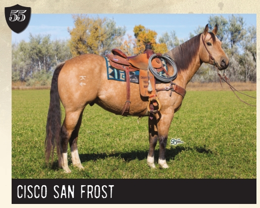 LOT 55: Cisco is the horse every family is looking for. Safe enough for kids and grandma, and all will look good riding him. He is a true switch-ender. His best quality is how much he tries. In the heading, he scores great, runs as hard as he can, and rates every time. Cisco is strong from the horn and finishes nicely. Heeling on him is easy, because he cows and doesn't take your throw away. He is one of our favorite ranch horses that we can let anyone ride, and they will be a big help. Stands 15 hands, weighs 1250 pounds, and wears a size 1 shoe. Cisco will be in Arizona a month prior to the sale. Please call 605-680-3044 with any questions and to come try him!