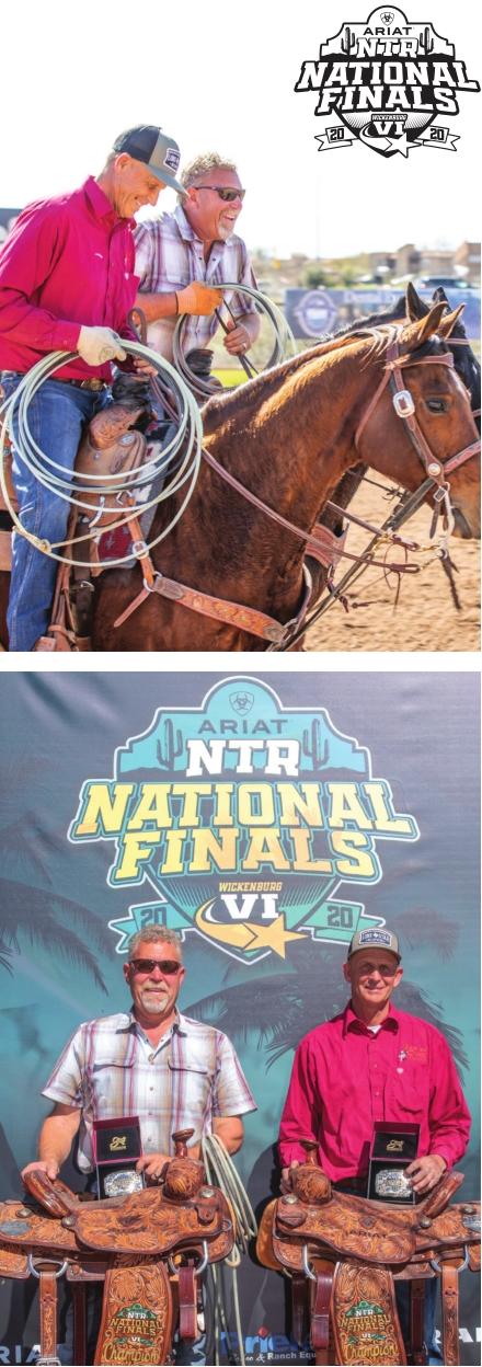 It’s a pretty good day when you can pick up a slick $20,640 cowboy style. Lynn Proctor, Boise, Idaho, and Dick Churchill, Queen Creek, Arizona, did just that when they won the National 10.5 Finale at the NTR National Finals VI with a time of 36.11 on four head.