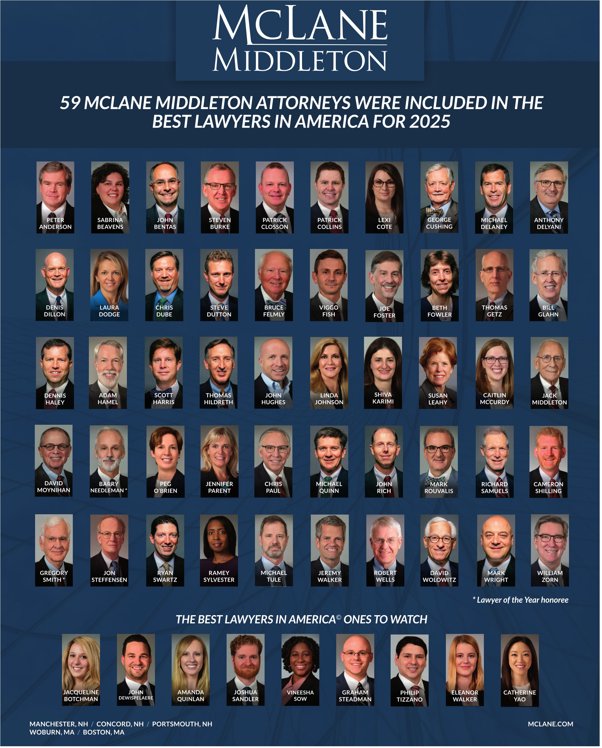 59 MCLANE MIDDLETON ATTORNEYS WERE INCLUDED IN THE BEST LAWYERS IN AMERICA FOR 2025