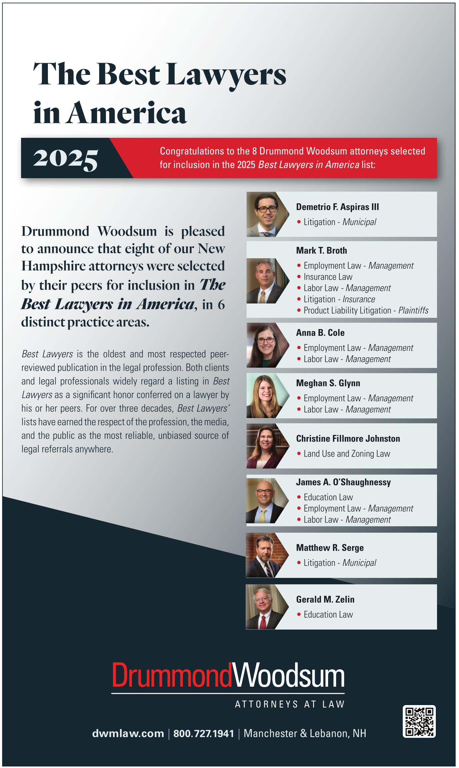 Congratulations to the 8 Drummond Woodsum attorneys selected for inclusion in the 2025 Best Lawyers in America list: