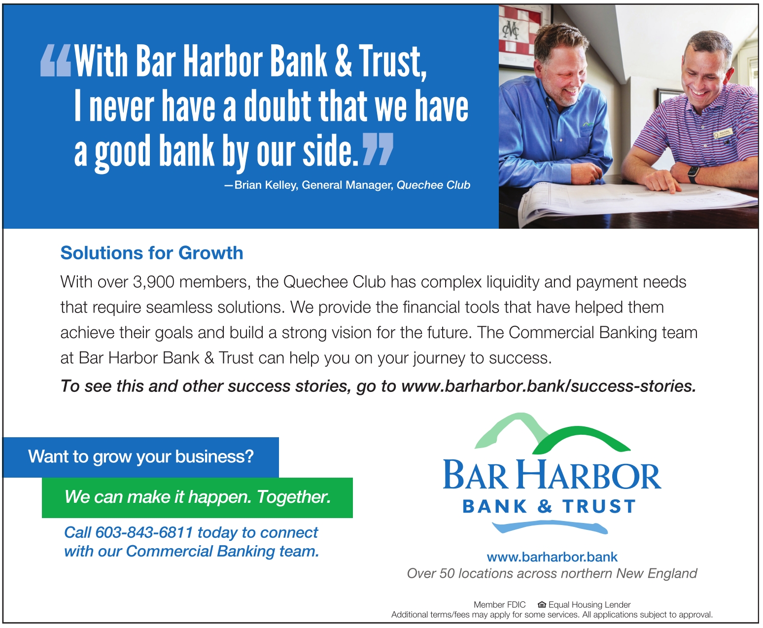 Call 603-843-6811 today to connect with our Commercial Banking team. www.barharbor.bank Over 50 locations across northern New England