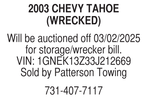 Will be auctioned off 03/02/2025 for storage/wrecker bill.
