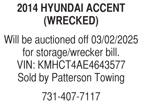 Will be auctioned off 03/02/2025 for storage/wrecker bill.