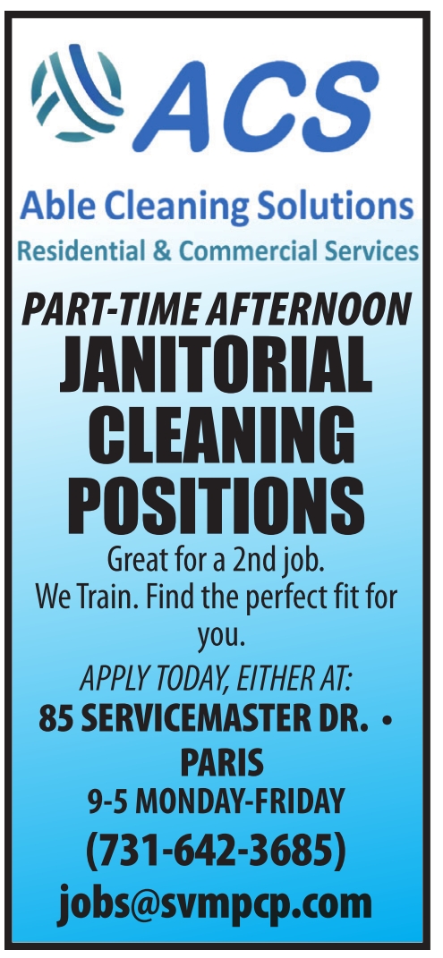 85 SERVICEMASTER DR. • PARIS 9-5 MONDAY-FRIDAY