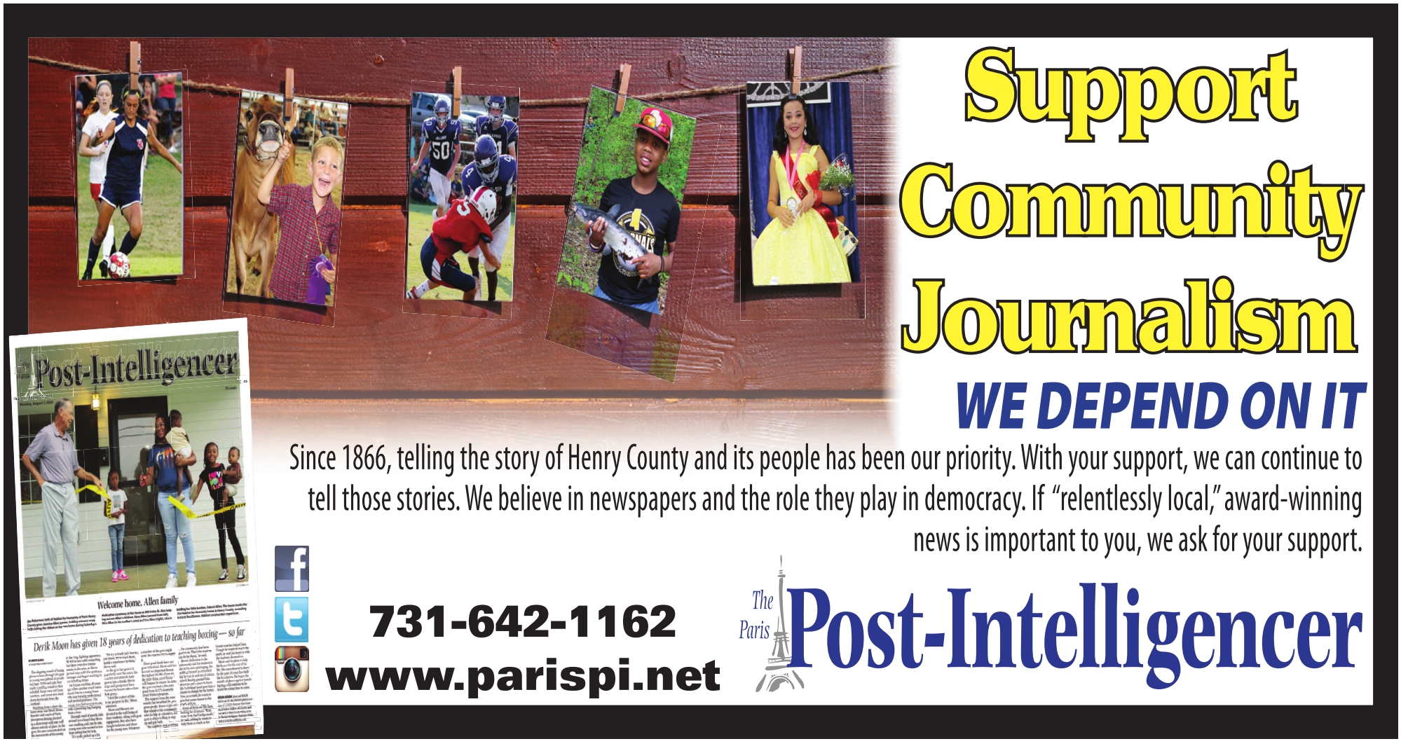 208 E. Wood St. • Paris, TN 731-642-1162 www.parispi.net Support Support Community Community Journalism Journalism WE DEPEND ON IT WE DEPEND ON IT Since 1866, telling the story of Henry County and its people has been our priority. With your support, we can continue to tell those stories. We believe in newspapers and the role they play in democracy. If “relentlessly local,” award-winning news is important to you, we ask for your support.