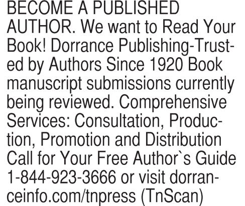 BECOME A PUBLISHED AUTHOR. We want to Read Your Book! Dorrance Publishing-Trusted by Authors Since 1920 Book manuscript submissions currently being reviewed. Comprehensive Services: Consultation, Production, Promotion and Distribution Call for Your Free Author`s Guide 1-844-923-3666 or visit dorranceinfo.com/tnpress (TnScan)