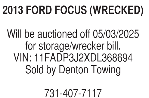 Will be auctioned off 05/03/2025 for storage/wrecker bill.