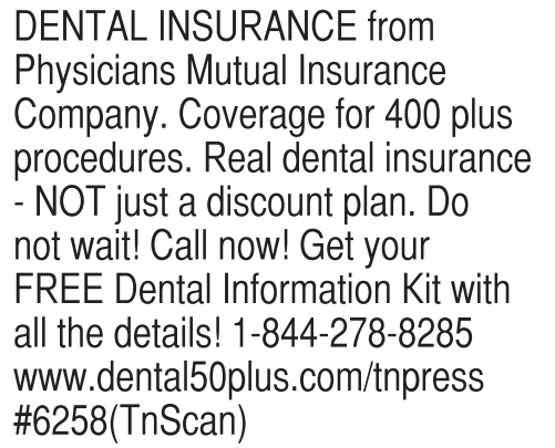DENTAL INSURANCE from Physicians Mutual Insurance Company. Coverage for 400 plus procedures. Real dental insurance - NOT just a discount plan. Do not wait! Call now! Get your FREE Dental Information Kit with all the details! 1-844-278-8285 www.dental50plus.com/tnpress #6258(TnScan)