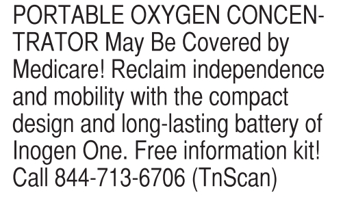 PORTABLE OXYGEN CONCEN- TRATOR May Be Covered by Medicare! Reclaim independence and mobility with the compact design and long-lasting battery of Inogen One. Free information kit! Call 844-713-6706 (TnScan)