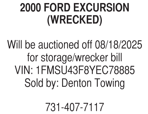 Will be auctioned off 08/18/2025 for storage/wrecker bill VIN: 1FMSU43F8YEC78885 Sold by: Denton Towing