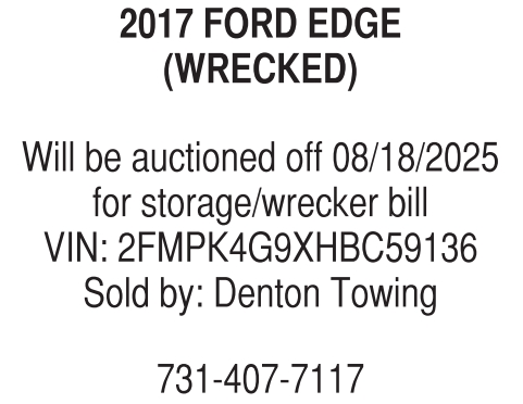 Will be auctioned off 08/18/2025 for storage/wrecker bill VIN: 2FMPK4G9XHBC59136 Sold by: Denton Towing