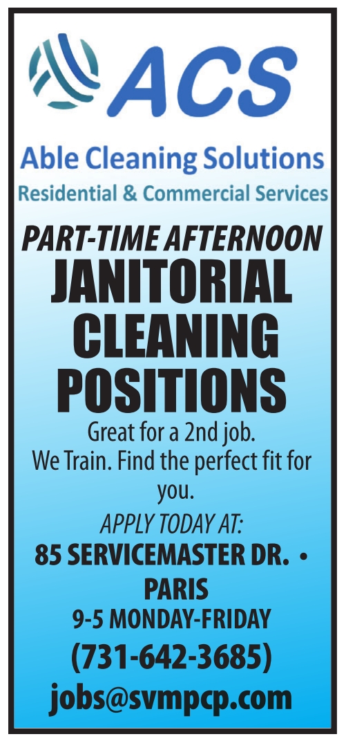 85 SERVICEMASTER DR. • PARIS 9-5 MONDAY-FRIDAY