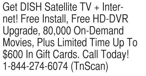 Get DISH Satellite TV + Internet! Free Install, Free HD-DVR Upgrade, 80,000 On-Demand Movies, Plus Limited Time Up To $600 In Gift Cards. Call Today! 1-844-274-6074 (TnScan)