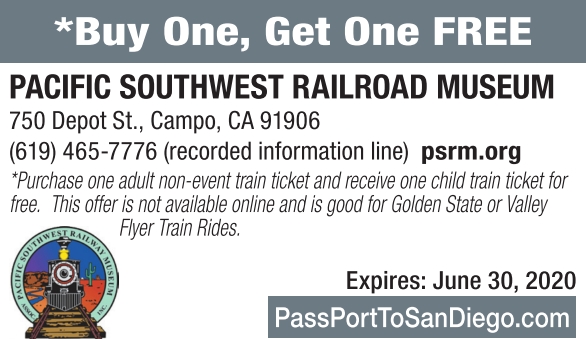 (619) 465-7776 (recorded information line) psrm.org *Purchase one adult non-event train ticket and receive one child train ticket for free. This offer is not available online and is good for Golden State or Valley Flyer Train Rides.
