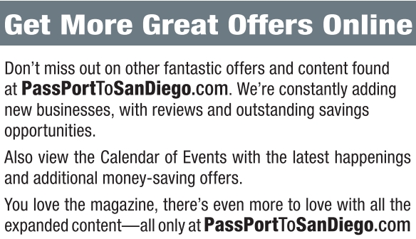 Don’t miss out on other fantastic offers and content found at PassPortToSanDiego.com. We’re constantly adding new businesses, with reviews and outstanding savings opportunities.