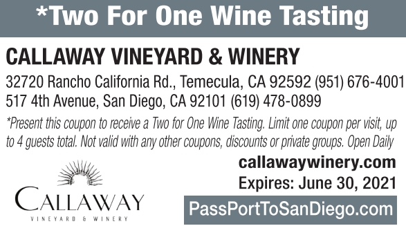 *Present this coupon to receive a Two for One Wine Tasting. Limit one coupon per visit, up to 4 guests total. Not valid with any other coupons, discounts or private groups. Open Daily