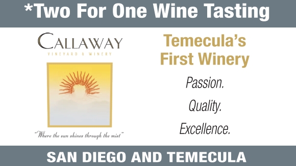 *Two For One Wine Tasting CALLAWAY VINEYARD & WINERY 32720 Rancho California Rd., Temecula, CA 92592 (951) 676-4001 517 4th Avenue, San Diego, CA 92101 (619) 478-0899 *Present this coupon to receive a Two for One Wine Tasting. Limit one coupon per visit, up to 4 guests total. Not valid with any other coupons, discounts or private groups. Open Daily callawaywinery.com Expires: June 30, 2021