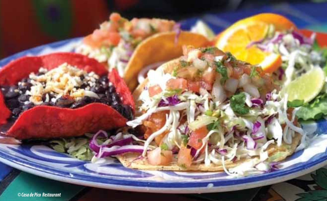 For authentic Mexican cuisine, head to Fiesta de Reyes, a shopping and dining venue where frosty margaritas, tasty tacos and succulent seafood dishes tempt the palate at two diverse restaurants: Casa De Reyes, featuring a garden setting, fire pits and a fiesta with lunch, dinner and Sunday brunch; Barra Barra Saloon, a friendly watering hole serving California Mex fare and an extensive list of tequilas. At Fiesta de Reyes, mariachi bands and beautiful folklorico dancers entertain visitors regularly. The surrounding courtyard also has 19 specialty shops selling everything from Mexican desserts to ghost tours. fiestadereyes.com