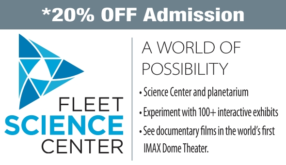 *20% Off Admission FLEET SCIENCE CENTER 1875 El Prado, San Diego, CA 92101 (619) 238-1233 fleetscience.org 20% off admission to the Science Center, which includes all exhibit galleries and one documentary film. Good for up to four discounted admissions. Not valid for special events or limited engagements. No cash value. Coupon Code: 20%OFF Expires: December 31, 2022 PassPortToSanDiego.com