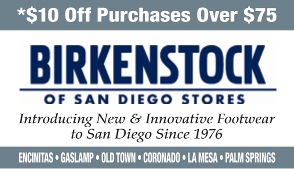 **Receive $10 off your purchase of $75 or more. Must present coupon at time of purchase. Managers hold full discretion of the use of this coupon. Cannot be combined with any other offers. birkenstocksd.com