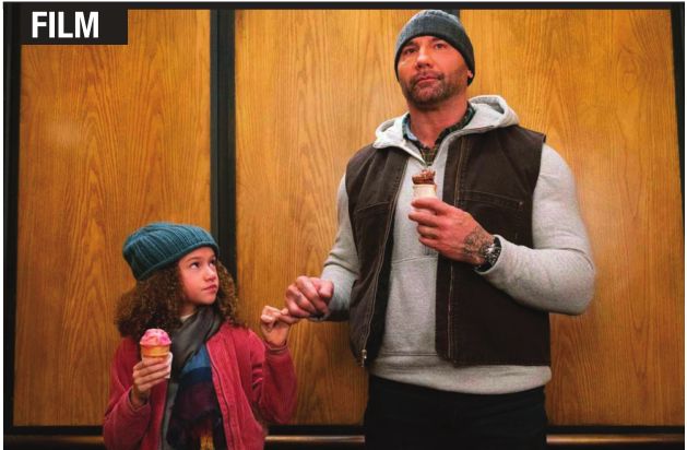 Ostensibly a remake of Arnold Schwarzenegger’s Kindergarten Cop, Bautista is JJ, a former soldier who’s having a hard time transitioning to his new position as a CIA operative. He lacks the deft touch needed for undercover work, which leads to a mission he’s assigned to going horribly sideways during the movie’s opening scenes. As a result, he’s assigned a simple surveillance detail where he and his overzealous new partner, Bobbi (Kristen Schaal), are supposed to keep tabs on Kate (Parisa Fitz-Henley) and Sophie (Chile Coleman), a mother and daughter who may have ties with a foreign arms dealer. However, their cover is soon compromised by the precocious nine-year old who threatens to expose them by downloading video footage of their operation on the internet. To stop her from doing that, JJ agrees to be her surrogate dad, attending her Bring-a-Parent-to-School Day, going to the student art show and showing up at the ice-skating rink for a gettogether. That he starts to date her mother is an unexpected but welcome bonus.
