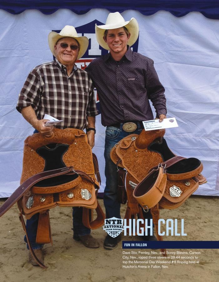 Dave Stix, Fernley, Nev., and Sonny Blevins, Carson City, Nev., roped three steers in 29.44 seconds to top the Memorial Day Weekend #8 Roping held at Hutchin’s Arena in Fallon, Nev.